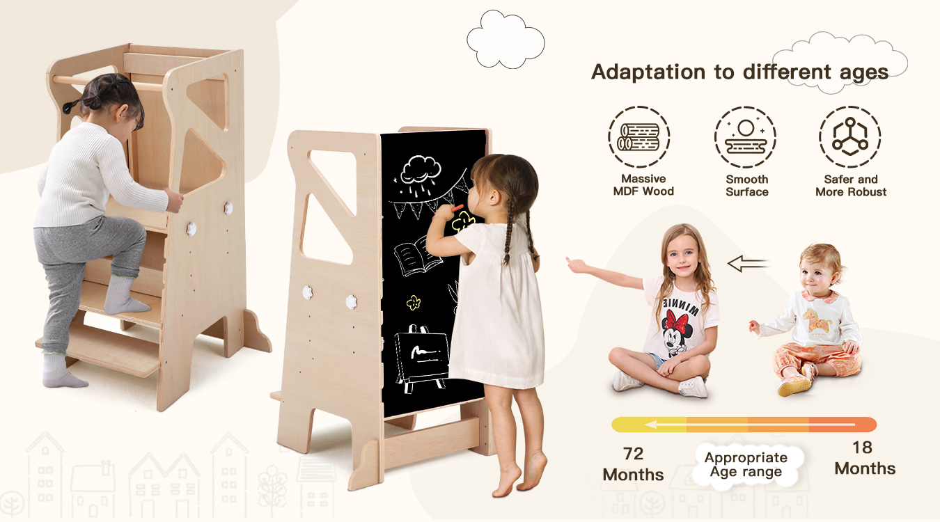 Safety railing, rounded corners, slip protection, and a stable base work together to keep kids secure while climbing, standing, and learning.